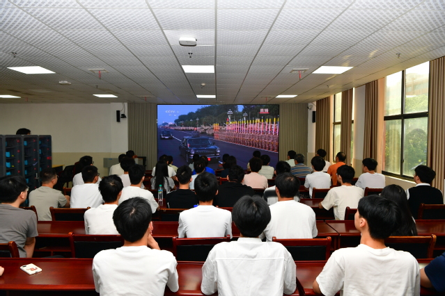 在科技楼学术报告厅,在家校领导、学校处级以上领导干部、学生代表一起观看了阅兵式。当受阅方队迈着铿锵有力的步伐通过检阅台,当先进的武器装备逐一亮相,现场师生不时响起热烈掌声。“从抗战时期的艰难求索,到如今的国富民强,一代代中国人的奋斗让我深受震撼。”人工智能与信息工程学院2022级学生朱世宏表示,观看阅兵式让他更加深刻地理解了“落后就要挨打”的历史教训,也更加坚定了学好专业知识、为国家科技发展贡献力量的决心。
