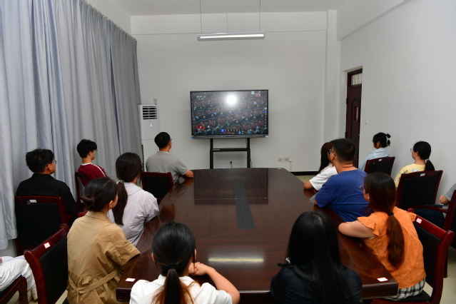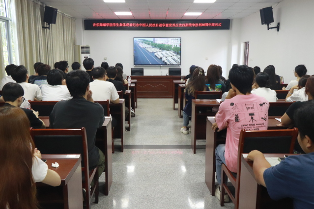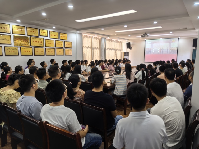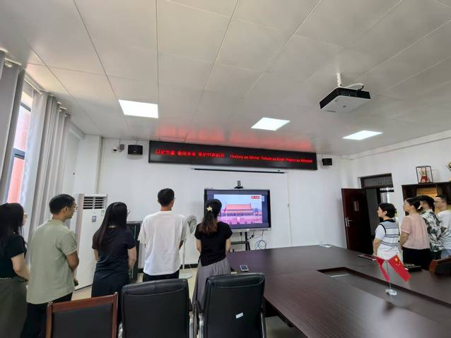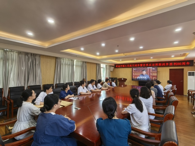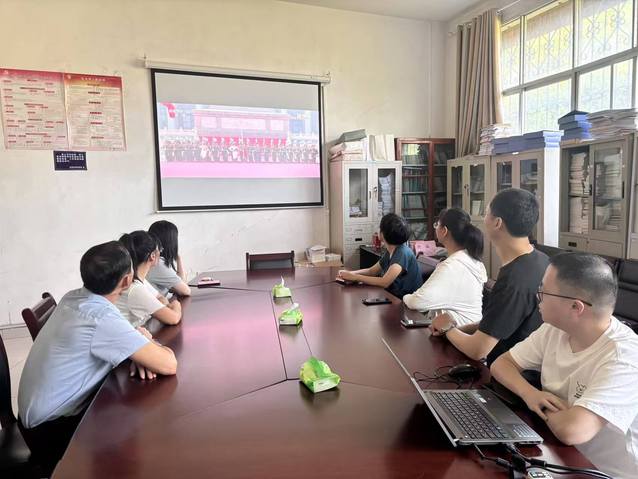升旗仪式结束后,学校组织全体师生在教学楼报告厅、班级教室、会议室等场所,集中观看纪念中国人民抗日战争暨世界反法西斯战争胜利80周年阅兵式直播。