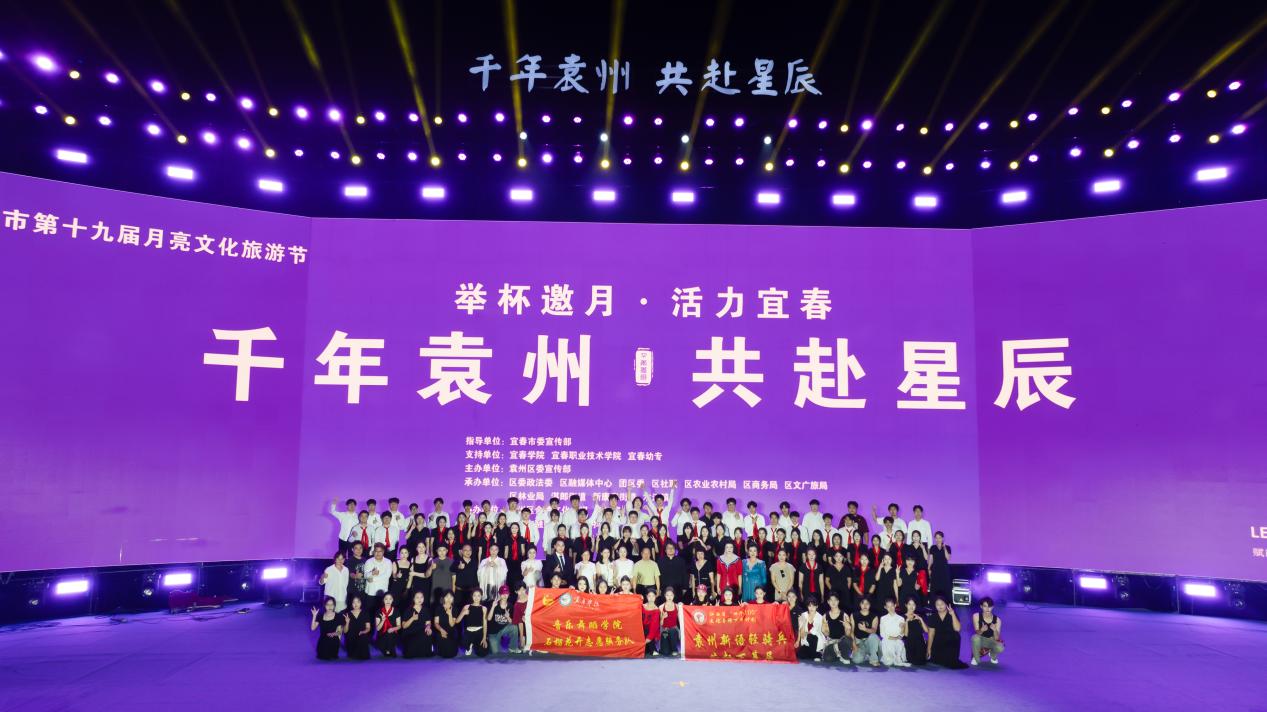 本站讯(特约通讯员 袁哈 学生记者 温乐花)华灯璀璨,月映袁州。自9月26日起,由宜春市委宣传部指导、宜春学院等高校支持、袁州区委宣传部主办的“举杯邀月·活力宜春”暨“千年袁州·共赴新城”全民消费活动季大型文艺演出在宜春市隆重举行。校党委书记李国金应邀出席了9月26日晚的启动仪式。我校高度重视此次校地合作,音乐舞蹈学院、体育学院及文学与新闻传播学院师生联袂承担了多场晚会的核心演出,呈现了一系列形式多样、内涵丰富的精品节目。一幅校地深度融合、共促文化繁荣的生动画卷正徐徐展开。