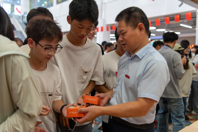 本站讯(学生记者 陈茹艺 黄宇琦 朱世弘 朱诗康 俞淳宝)9月30日,在国庆、中秋双节交汇的温馨时刻,我校在校本部大学生活动中心双创学院路演大厅、厚德校区食堂一楼大厅同步举行“五宜同心庆国庆 大爱育人谱新篇”月饼派发活动。校党委书记李国金,校党委副书记、校长蔡海生,校党委委员、副校长黄诚分别到活动现场,为同学们发放定制的香甜月饼,为全校师生送上一份温暖而特别的节日祝福。