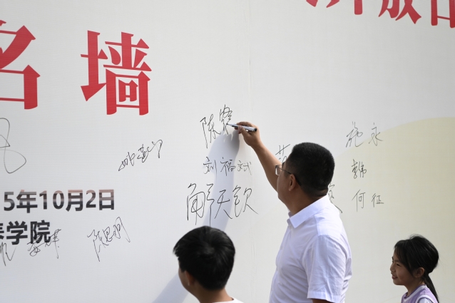 上午9时,学府校区南门已是一片热闹景象。身着红色马甲的志愿者们用一句句“欢迎回家”迎接校友。外国语学院校友成志科刚下车,就被校门口的校牌吸引,他快步走到签到墙前写下名字,指尖触碰到墙面的瞬间红了眼眶:“看到‘宜春学院’这四个字,就像回到了当年在学校努力奋斗的时光,那种为梦想拼劲十足的感觉一下子就回来了。”