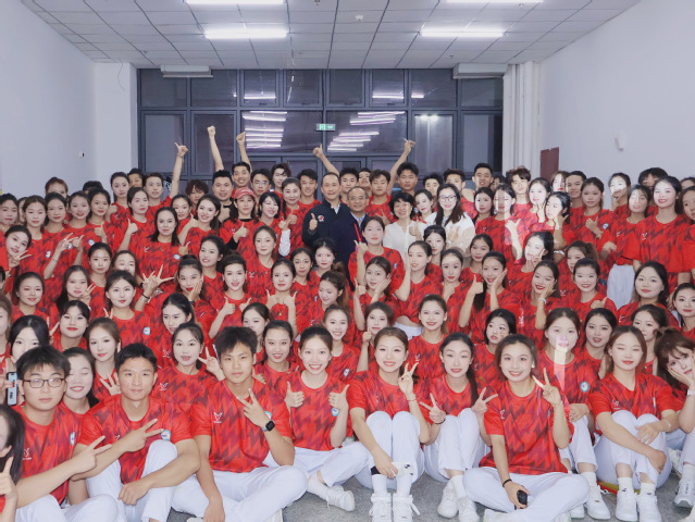 耀眼舞台的背后,是师生们与时间赛跑的坚守与付出。此次两场演出筹备时间紧张,尤其是体育学院的大型助威展演,从创编、排练到正式登台仅用时一个月。为呈现最佳效果,两院师生充分利用全部课余时间加班加点,动作反复打磨、细节精益求精;专业教师全程驻场,从编排设计到现场走位,每一个环节都倾注心血。这份全力以赴的执着,不仅换来了赛场之上的完美呈现,更展现了宜春学院师生过硬的专业素养与责任担当。
