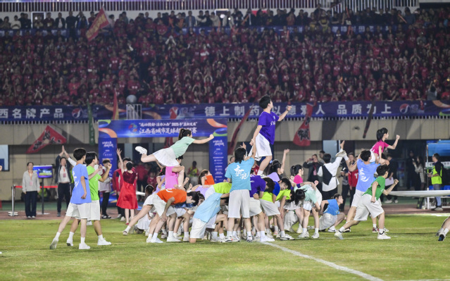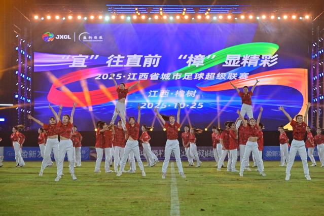 本站讯(体育学院 供稿)10月25日晚,备受瞩目的2025·江西省城市足球超级联赛(赣超)决赛在宜春主赛场火热开赛。在这场关注度席卷全国、影响力辐射全域的顶级赛事中,宜春学院学子携两场高水准文体演出惊艳亮相:既有点燃开场的活力歌舞,更有震撼中场的大型助威展演,以青春之力为赛事注入澎湃动能,不仅成为决赛夜最耀眼的“青春名片”,更生动诠释了校地协同发展的扎实成效。