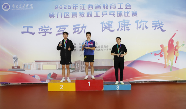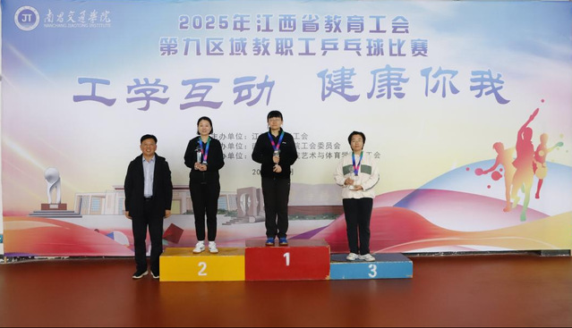 本站讯(校工会 供稿)近日,由江西省教育工会主办、南昌交通学院工会承办的2025年第九区域“工学互动 健康你我”教职工乒乓球比赛,在南昌交通学院墨轩湖校区圆满落幕。