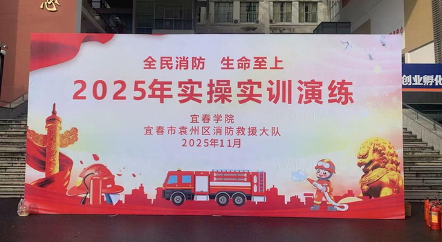 本站讯(保卫处 供稿 学生记者 朱世弘)为深入贯彻落实消防安全责任制,切实强化校园消防安全管理,提升全体师生应急避险与自救互救能力,筑牢平安校园防火墙,我校于11月18日在大学生活动中心广场组织开展了以“全民消防 生命至上”为主题的消防实操实训演练。本次演练以实战化、强技能、全覆盖为核心,邀请袁州区消防救援大队进行专业指导,全校师生、各部门安全负责人、实验室实验员、后勤保障人员共同参与,实现了演练即实战的预期目标。