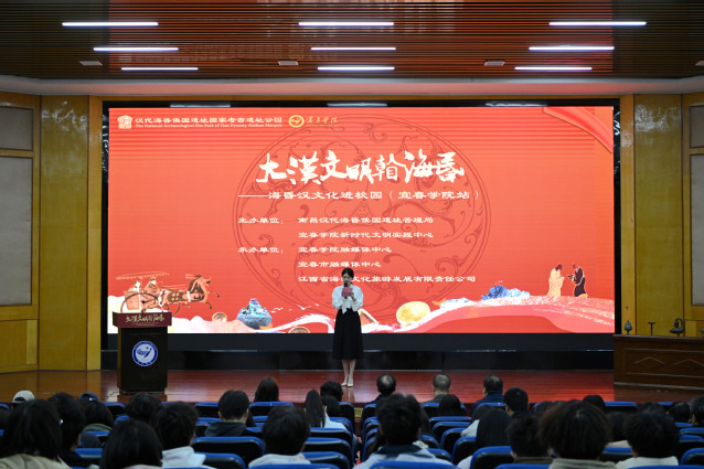 本站讯(学生记者吴永乐) 溯大汉文脉,探海昏遗珍。为弘扬海昏侯珍贵历史文化遗产,推动优秀传统文化深入菁菁校园,11月26日,海昏侯文化进校园活动在宜春学院顺利举行。宜春学院党委委员、副校长李建军,江西省海昏文化旅游发展有限责任公司总经理彭正胜,副总经理杨炫羚以及学校党委宣传部、校团委等部门负责人出席活动。本次活动通过专题展览与讲解,让师生们近距离感受汉代文明的璀璨辉煌,六百余名师生代表参加了此次活动。
