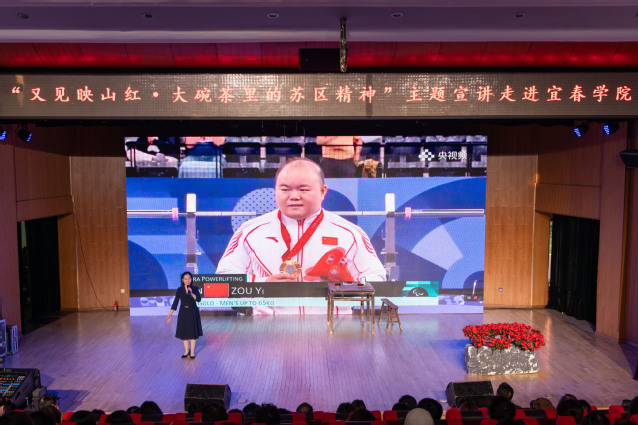 在随后的宣讲中,宣讲人依次呈现四杯韵味悠长的“精神茶饮”:《英雄茶·血色印章》以炽热真情讲述革命先辈为守护苏维埃政权印章不惜牺牲生命的壮烈事迹,诠释了“革命理想高于天”的忠诚信仰;《将军茶·红色电波》在方寸之间重现通讯战士于无形战场运筹帷幄的场景,彰显老一辈革命家沉着坚定的使命担当;《愚公茶·“愚公”凿山》深情刻画万载百姓穿山凿洞、引水灌溉所蕴含的自力更生、艰苦奋斗、战天斗地的精神特质,凝练为新时代干部群众务实肯干、不等不靠、拼搏奋进的精神动力;《冠军茶·不屈的荣光》巧妙连接苏区精神与新时代体育精神,讲述运动健儿继承先辈遗志、在巴黎残奥会上勇夺冠军的故事,赋予苏区精神崭新的时代内涵。
