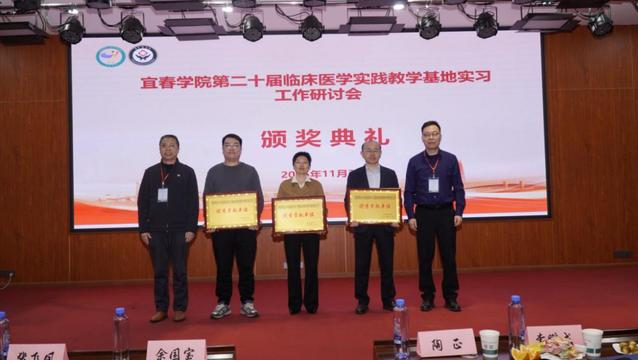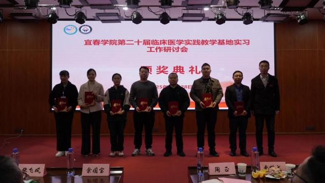 会议第三阶段由宜春学院临床医学院党委副书记丁纬主持。大会对2024-2025学年度实习基地优秀带教科室、优秀带教教师,2025年实习基地本科教育教学审核评估工作优秀贡献单位等集体及个人进行了表彰,颁发了奖牌及证书。