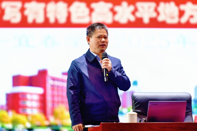 会上,校党委副书记、校长蔡海生以“共绘五宜新画卷、团结一心向未来——奋力谱写有特色高水平地方应用型大学建设新篇章”为主题,围绕“宜春学院,我们共同的家园”“宜春学院,我们共同的事业”“宜春学院,我们共同的行动”“宜春学院,我们共同的未来”四个方面进行了梳理和总结,他全面回顾了2025年学校的工作成效,以翔实的数据和扎实的案例,展现了全校上下团结奋斗、锐意进取的实干成效。