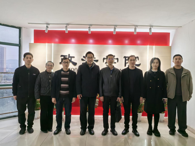 本站讯(政法学院 供稿)为深化校地合作内涵,凝聚法治建设合力,12月9日下午,宜春市司法局党组成员、政治部主任李俊及普法依法治理科科长陈钟、公共法律服务管理科科长郭启荣到政法学院指导交流,院党委书记江海华、院长黄心华、院党委副书记彭农乐、副院长罗许生及宜春学院法律援助工作站教师张鑫出席座谈,双方就校地协同推进法治宜春建设、人才培养等内容开展深入交流,达成广泛共识。