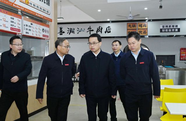 报告会开始前,谭赣明来到宜春学院第一食堂,实地调研食品安全工作。在查看食堂环境卫生、询问食材采购流程、听取学校食品安全总体情况介绍后,谭赣明强调,要严格落实食品安全管理制度,抓好食品采购、贮存、加工等全过程闭环管理,规范操作流程,充分运用信息化管理等手段,确保源头可溯、风险可控,让广大师生吃得放心、吃得健康。