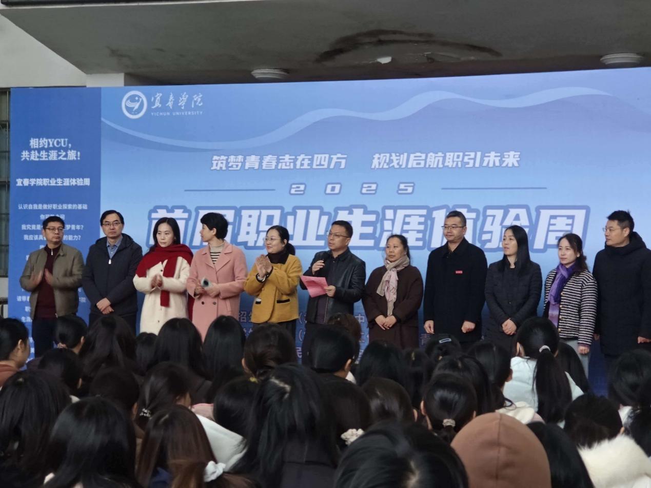 本站讯(学生通讯员 黄旭丹 周倩倩)为深入贯彻党中央、国务院及江西省委、省政府关于促进高校毕业生高质量充分就业的决策部署,扎实推进学校生涯教育体系建设,切实提升学生职业发展指导实效,12月13日上午,第三届全国职业规划大赛同期活动——宜春学院首届职业生涯体验周活动在校本部大学生活动中心就业之家和西校区图文中心一楼同时拉开帷幕。招生就业处、学工处、校团委负责同志及各教学院相关领导出席启动仪式。