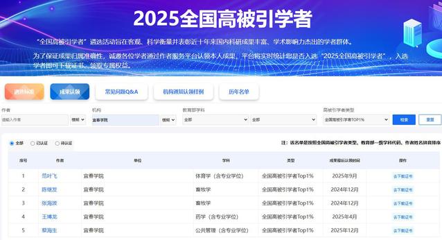 宜春学院此次22位学者入选“2025全国高被引学者”榜单,是对学校学者学术成果质量与学术影响力的高度认可,同时也说明了学界对学校学科建设和学术影响力的关注。2026年,学校将进一步发挥科研平台与学科基础优势,持续开展有组织科研,有效提升学术硬实力。