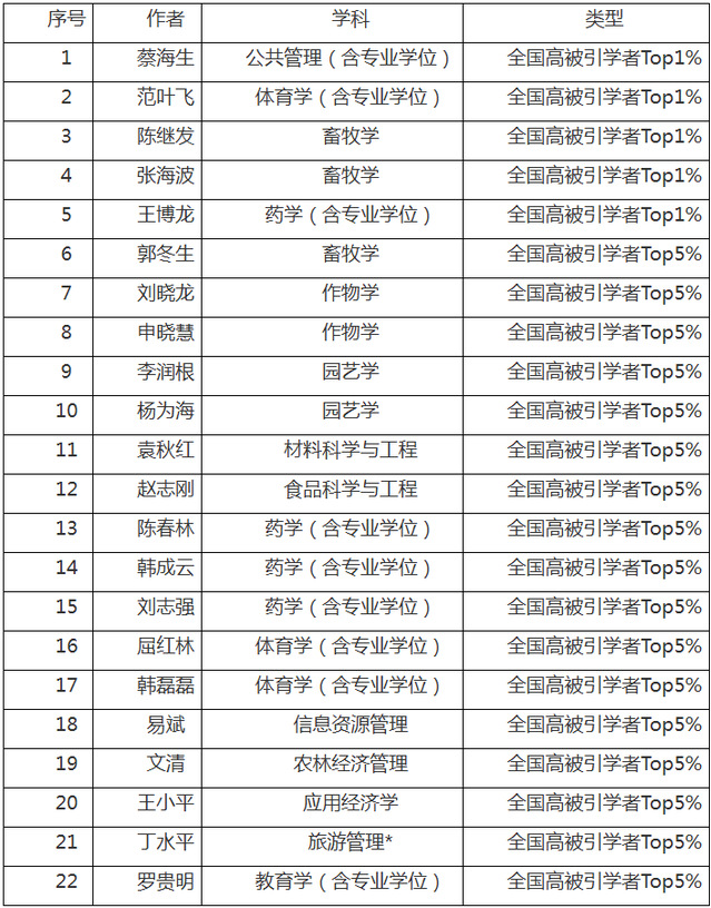 根据该名单,我校蔡海生等5位学者入选“2025全国高被引学者Top1%”,郭冬生等17位学者入选“2025全国高被引学者Top5%”,详见表1。
