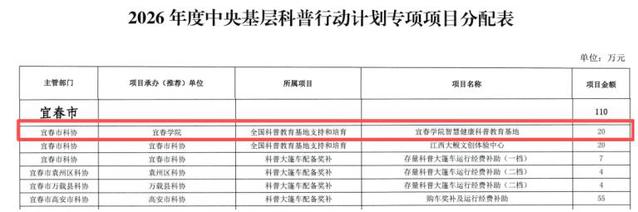 本站讯(科学研究处 供稿)近日,在江西省科协组织实施的“江西省全国科普教育基地支持和培育项目”评选中,我校脱颖而出,成为江西省6所入选建设高校之一。这一成果标志着我校在科普资源转化、社会服务能力提升及创新人才培养方面获得了社会的高度认可,实现了重要突破。