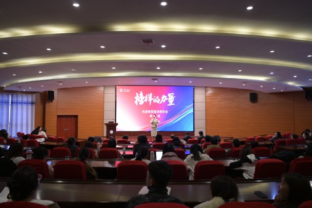 本站讯(学生记者 陈茹艺)为深入弘扬“五宜四美”育人风尚,充分发挥先进典型的示范引领作用,12月17日下午,我校在科技楼报告厅成功举办“榜样的力量”教师场先进典型报告会。党委委员、副校长李建军,党委委员、副校长谢芳,各职能部门负责人及学校近五年新进教师聆听报告会,近距离聆听榜样故事,汲取奋进力量。