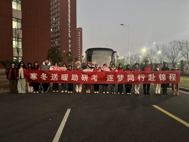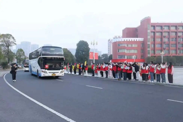 本站讯(教务处供稿)清晨的薄雾像轻纱被阳光轻轻掀开,天空澄澈得仿佛能装下所有梦想。12月20日,校本部主教楼前的6辆大巴与厚德校区的2辆大巴同时亮起车灯——像一串被点燃的星子,载着几百名考研学子的梦想,在鸟鸣与微风的伴奏里缓缓启程。