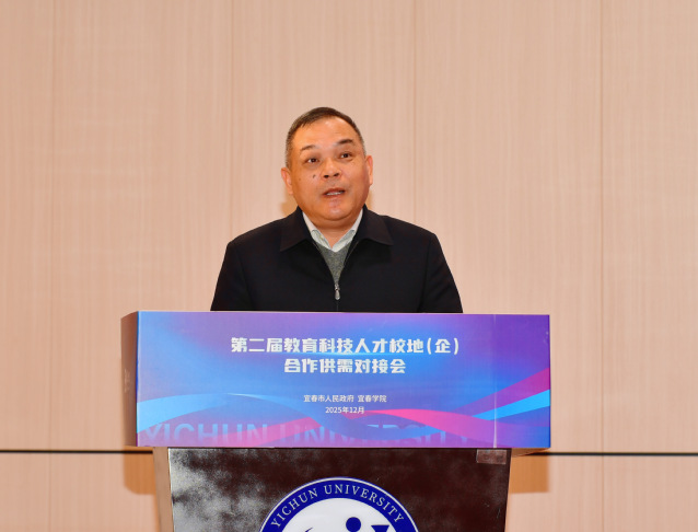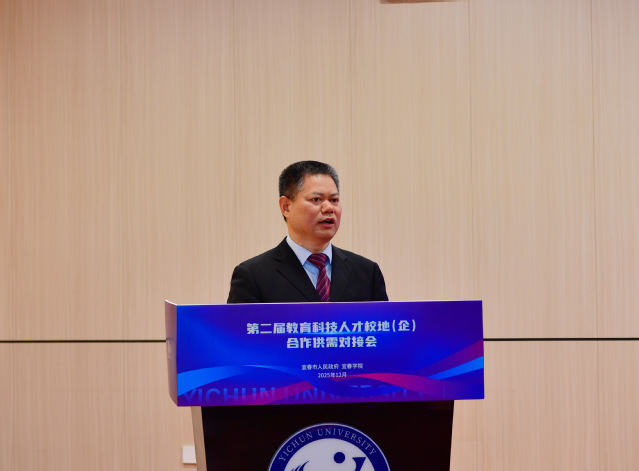 宜春市委副书记、市政府党组书记、市长谭赣明代表宜春市委、市政府向长期以来支持宜春发展的各界人士表示感谢。他强调,宜春正加快构建现代化产业体系,培育发展新兴产业,推动开发区改革创新,迫切需要教育和科技的强力支撑、人才的智力赋能。市委、市政府将始终把教育摆在优先发展的战略位置,一体推进教育强市、科技强市、人才强市建设,持续优化合作环境,为校地(企)合作搭建更广阔的平台。希望宜春学院继续发挥人才、科研优势,与地方企业精准对接,实现“地方出题、高校接题、共同答题” 的良性互动,让更多科技成果在宜春落地生根、开花结果。