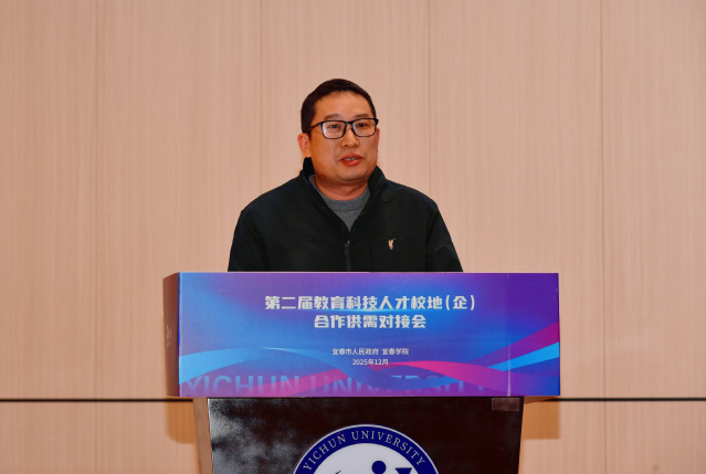 省教育厅二级巡视员杨联愚对本次对接会的举办表示肯定,认为这是江西深化产教融合、校企合作的生动实践。他强调,教育是科技创新的基础,人才是高质量发展的核心,要持续优化人才培养机制,创新教育教学模式,推动教育发展、科技创新、人才培养一体化推进。希望宜春学院与地方政府、企业以此次对接会为契机,进一步深化合作内涵,拓展合作领域,打造可复制、可推广的产教融合新范本,为江西“1269”行动计划注入教育动能。