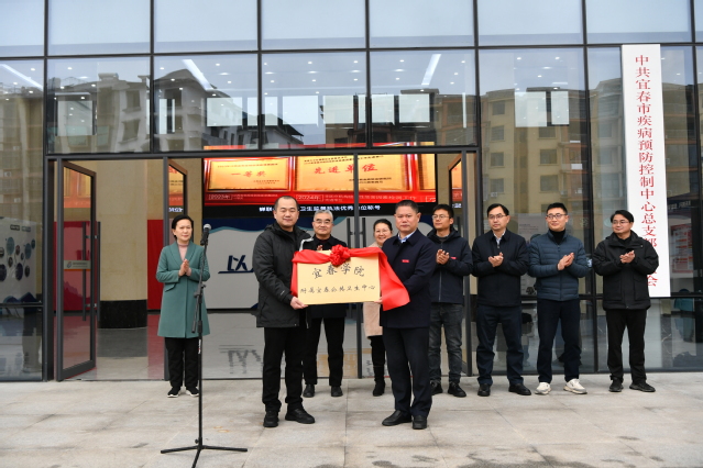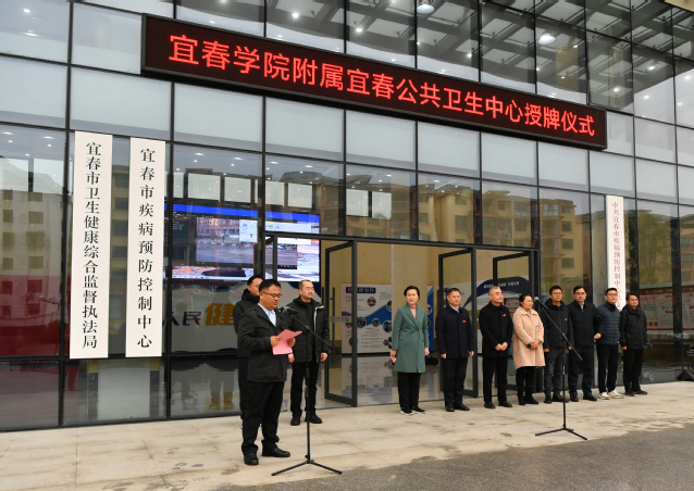 在全体与会人员的热烈掌声中,宜春学院党委副书记、校长蔡海生向宜春市疾控中心(市卫监局)授予了“宜春学院附属宜春公共卫生中心”牌匾,标志着该合作平台正式投入运行。