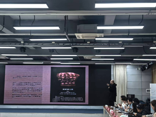 活动特邀请我校美术与书法学院金兴老师进行现场演示与专业指导,他深入浅出地为大家讲解螺钿画的历史渊源与基础制作技法,细致剖析螺钿画的独特风格与创作要点。