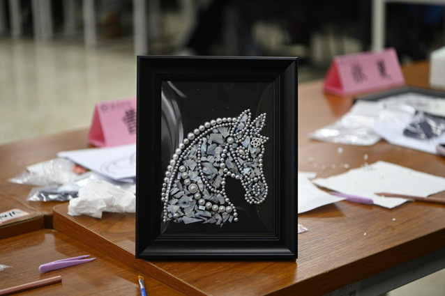 在螺钿画制作环节,女教职工们兴致盎然,充分发挥创意与想象力,在一粘一贴间精心雕琢,将平凡的材料打造成一件件独具匠心的螺钿画作品。现场欢声笑语不断,大家一边创作,一边交流生活与工作点滴,在指尖的创作中不仅舒缓了工作压力,还感受到这项传统非遗技艺的别样魅力。活动最后,女教职工们手捧自己的作品移步展示区,集中展示创作成果并合影留念,定格这份独属于三八妇女节的美好记忆。