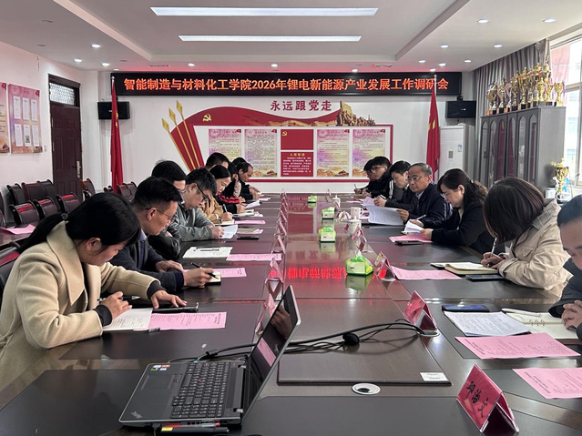 本站讯(智能制造与材料化工学院 供稿)3月17日上午,校党委书记李国金,校党委委员、副校长谢芳一行来到智能制造与材料化工学院,专题调研锂电新能源产业发展工作。党委(校长)办公室主任张国斌陪同调研。学院党委书记龙玲主持调研座谈会,院长刘健平作工作汇报,学院领导班子成员、各教研室主任与专业负责人,及10余位锂电研究领域博士代表参加了座谈。
