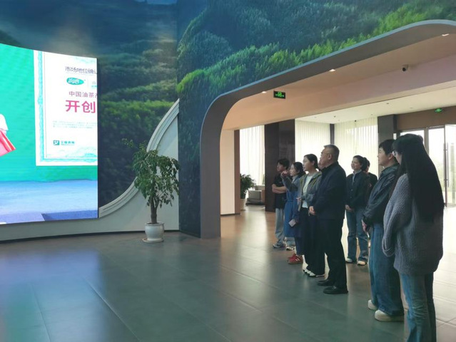 座谈会后,刘娜陪同黄诚一行参观了企业油茶展览馆。从油茶历史渊源到品牌发展沿革,从有机茶果产区布局到全流程质量管控,再到最新研发的高附加值产品,刘娜娓娓道来。黄诚对企业深耕产业、品质为先、创新驱动的经营理念给予高度评价。