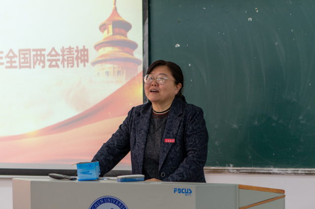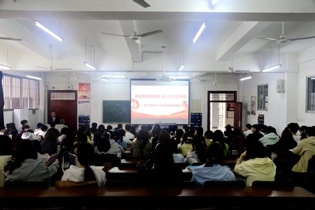 课堂上,校领导和授课教师以《春启新程谋发展 宜心聚力谱新篇——学习2026年全国两会精神》为主题,围绕“全面把握全国两会基本概况”“深刻领会重要讲话精神要义”“认真研读政府工作报告内容”“践行教育使命 勇担青年责任”四个方面对两会精神进行了系统阐释和精准解读。宣讲既有对国家发展蓝图的宏观解读,也有对青年成长成才的具体指引,兼具理论深度与实践温度。